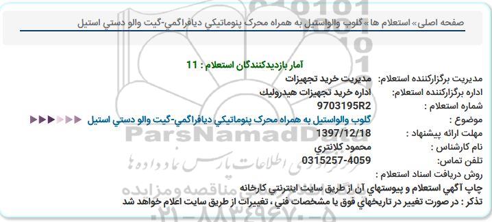 اداره برگزارکننده استعلام: اداره خرید تجهیزات هیدرولیک