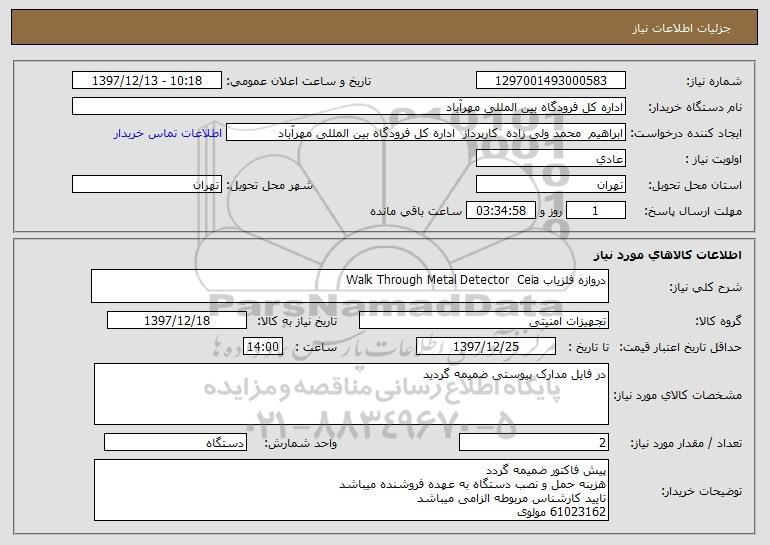 شرح کلی نیاز: دروازه آشکار ساز فلز Walk Through Metal Detector Ceia