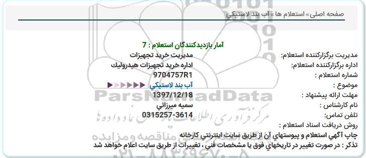اداره برگزارکننده استعلام: اداره خرید تجهیزات هیدرولیک
