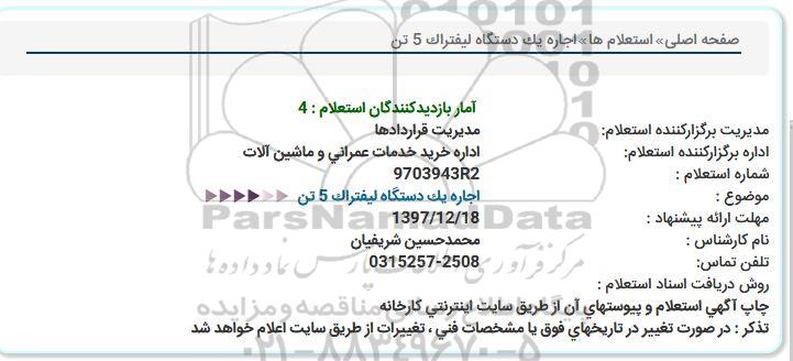 موضوع : اجاره یک دستگاه لیفتراک 5 تن