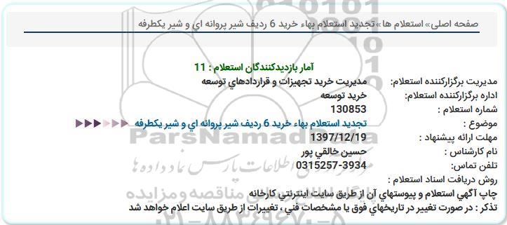 موضوع :   استعلام تجدید بهاء خرید 6 ردیف شیر پروانه ای و شیر یکطرفه