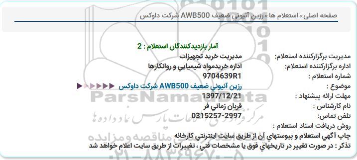 استعلام رزین آنیونی ضعیف AWB500 شركت داوكس , استعلام, استعلام رزین آنیونی ضعیف AWB500 شركت داوكس