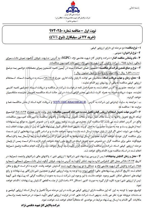 مناقصه خرید77 تن سیلیکاژل , آگهی مناقصه عمومی, مناقصه خرید77 تن سیلیکاژل