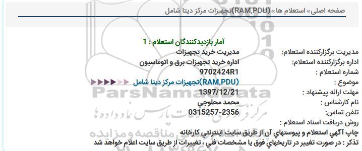 موضوع : (RAM,PDU)تجهیزات مركز دیتا شامل
