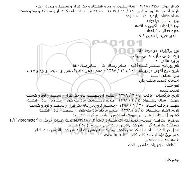 موضوع مناقصه عمومی دومرحله ای شماره RND-۹۷۱۸۱۹۳-MJتحت عنوان خرید P/F"Vibrometer"