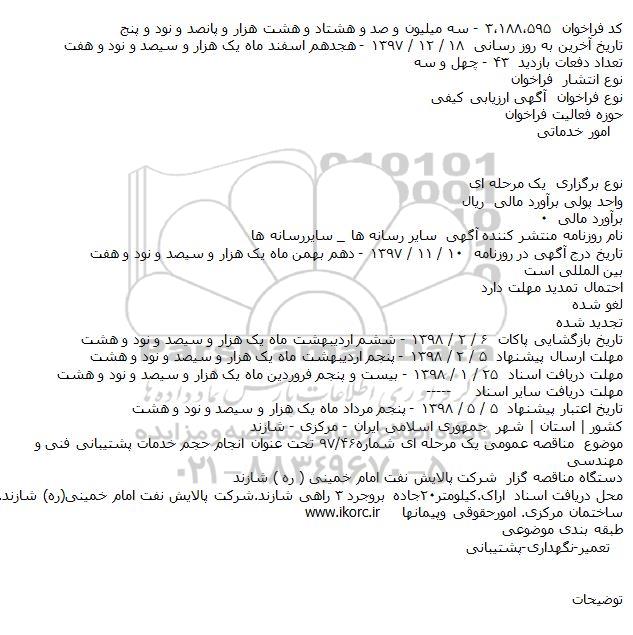موضوع مناقصه عمومی یک مرحله ای شماره۴۶/۹۷ تحت عنوان انجام حجم خدمات پشتیبانی فنی و مهندسی