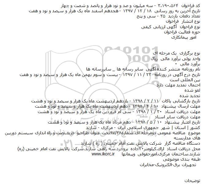 موضوع مناقصه عمومی دومرحله ای شماره۴۸/۹۷تحت عنوان طراحی و خرید٫نصب و راه اندازی سیستم دوربین های مداربسته