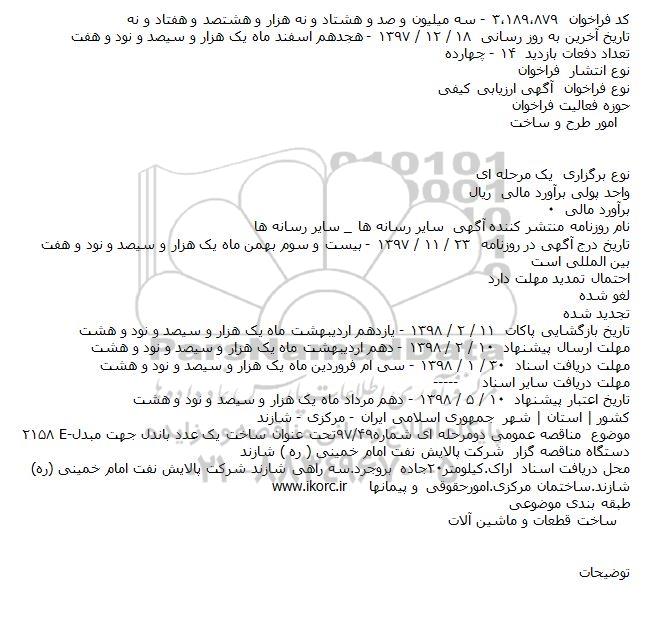 موضوع مناقصه عمومی دومرحله ای شماره۴۹/۹۷تحت عنوان ساخت یک عدد باندل جهت مبدل E-۲۱۵۸
