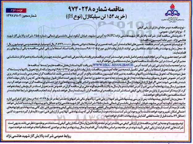 مناقصه خرید 154 تن سیلیکاژل (نوع H) نوبت دوم , آگهی مناقصه , مناقصه خرید 154 تن سیلیکاژل (نوع H) نوبت دوم