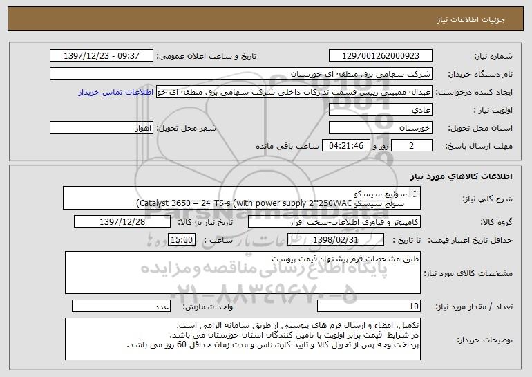 نام دستگاه خریدار:شرکت سهامی برق منطقه ای خوزستان