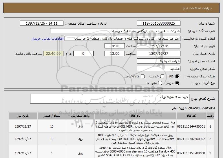 شرح کلی نیاز: خرید سه نمونه ورق