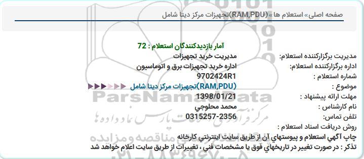 موضوع : (RAM,PDU)تجهیزات مركز دیتا شامل
