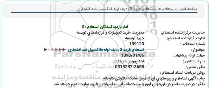 موضوع :     استعلام خرید 3 ردیف لوله فلاکسیبل ضد انفجاری