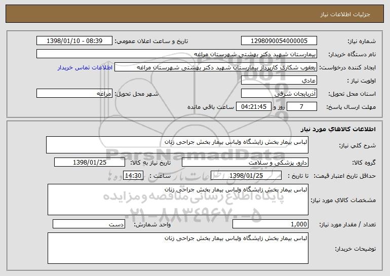 نام دستگاه خریدار:بیمارستان شهید دکتر بهشتی شهرستان مراغه
