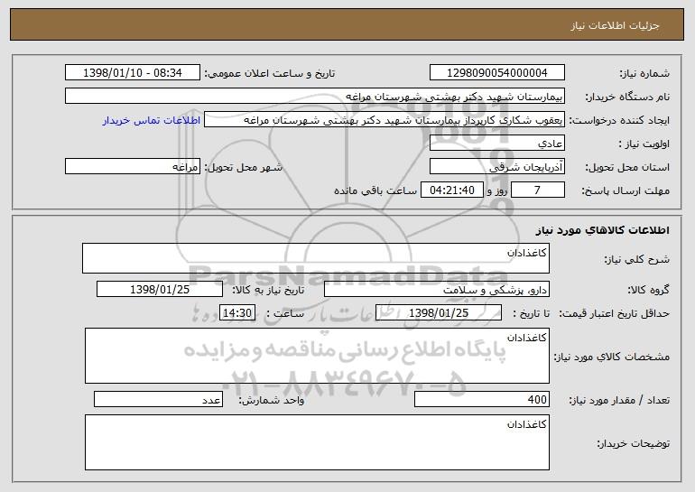نام دستگاه خریدار:بیمارستان شهید دکتر بهشتی شهرستان مراغه