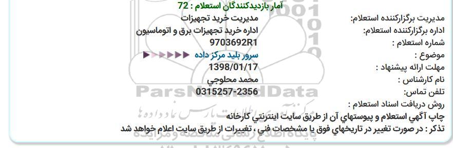 اداره برگزارکننده استعلام: اداره خرید تجهیزات برق و اتوماسیون