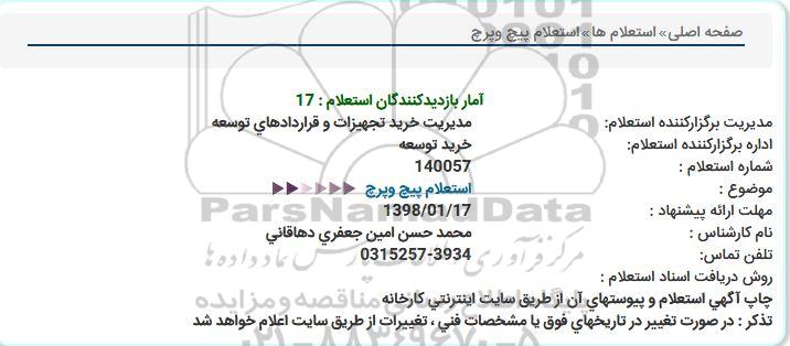 مدیریت برگزارکننده استعلام:     مدیریت خرید تجهیزات و قراردادهای توسعه