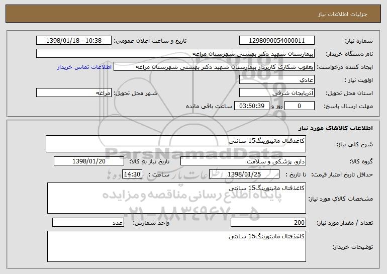 نام دستگاه خریدار:بیمارستان شهید دکتر بهشتی شهرستان مراغه