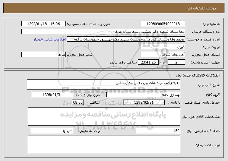 نام دستگاه خریدار:بیمارستان شهید دکتر بهشتی شهرستان مراغه