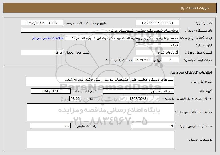 نام دستگاه خریدار:بیمارستان شهید دکتر بهشتی شهرستان مراغه