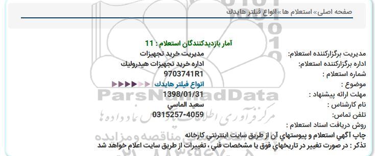 استعلام انواع فیلتر هایدک , استعلام, استعلام انواع فیلتر هایدک