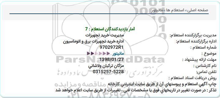 اداره برگزارکننده استعلام: اداره خرید تجهیزات برق و اتوماسیون