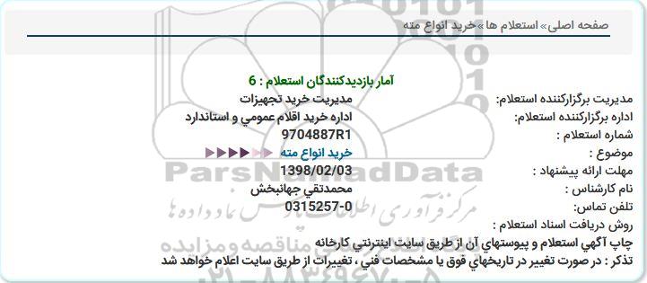 اداره برگزارکننده استعلام: اداره خرید اقلام عمومی و استاندارد