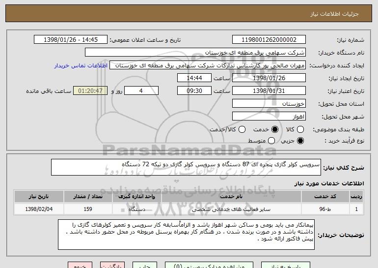 شرح کلی نیاز: سرویس کولر گازی پنجره ای 87 دستگاه و سرویس کولر گازی دو تیکه 72 دستگاه