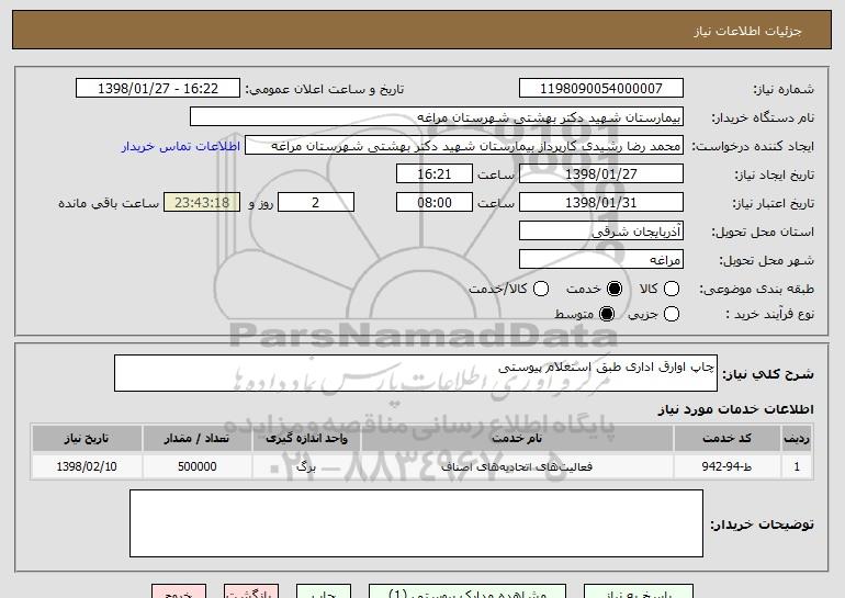 نام دستگاه خریدار:بیمارستان شهید دکتر بهشتی شهرستان مراغه