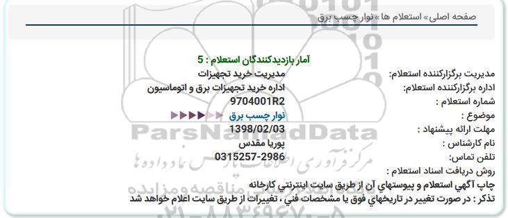 استعلام نوار چسب برق , استعلام, استعلام نوار چسب برق