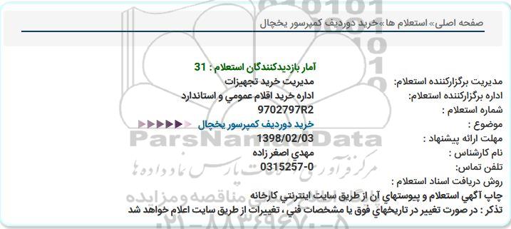استعلام خرید دو ردیف کمپرسور یخچال , استعلام, استعلام خرید دو ردیف کمپرسور یخچال