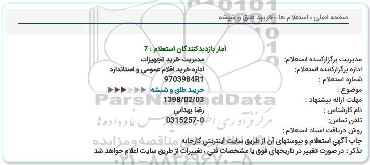 استعلام خرید طلق و شیشه, استعلام خرید طلق و شیشه