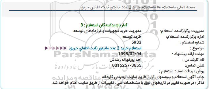 موضوع : استعلام خرید 2 عدد مانیتور ثابت اطفای حریق