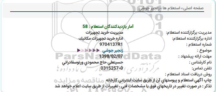 اداره برگزارکننده استعلام: اداره خرید تجهیزات مکانیک