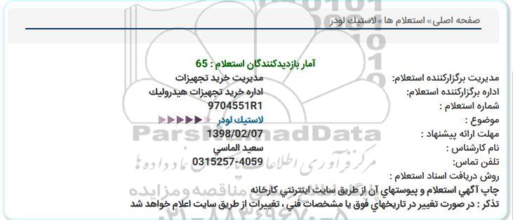 استعلام لاستیک لودر , استعلام, استعلام لاستیک لودر