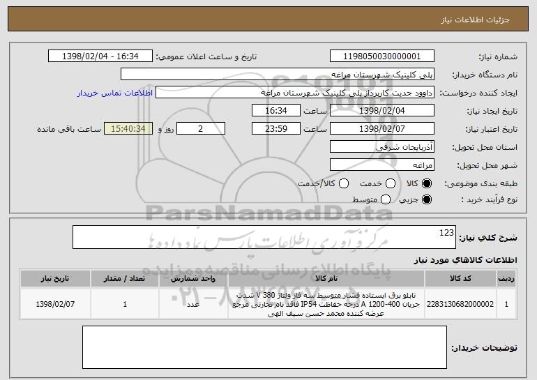 نام دستگاه خریدار:پلی کلینیک شهرستان مراغه