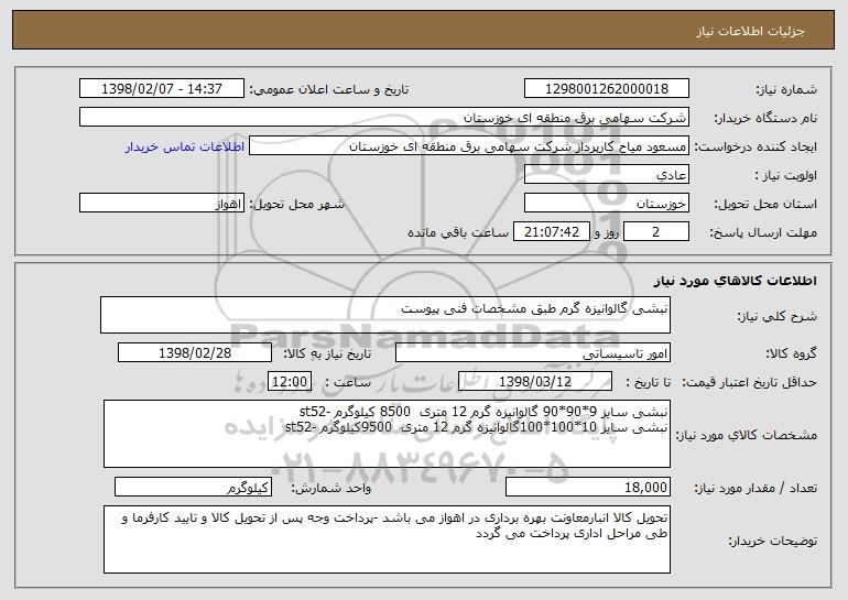 نام دستگاه خریدار:شرکت سهامی برق منطقه ای خوزستان