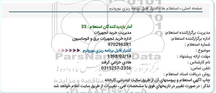 اداره برگزارکننده استعلام:     اداره خرید تجهیزات برق و اتوماسیون
