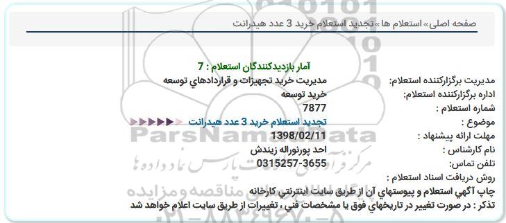 موضوع :  استعلام خرید 3 عدد هیدرانت