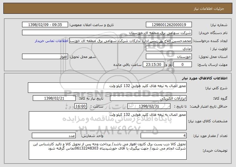 نام دستگاه خریدار:شرکت سهامی برق منطقه ای خوزستان