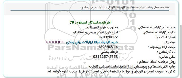 اداره برگزارکننده استعلام: اداره خرید اقلام عمومی و استاندارد