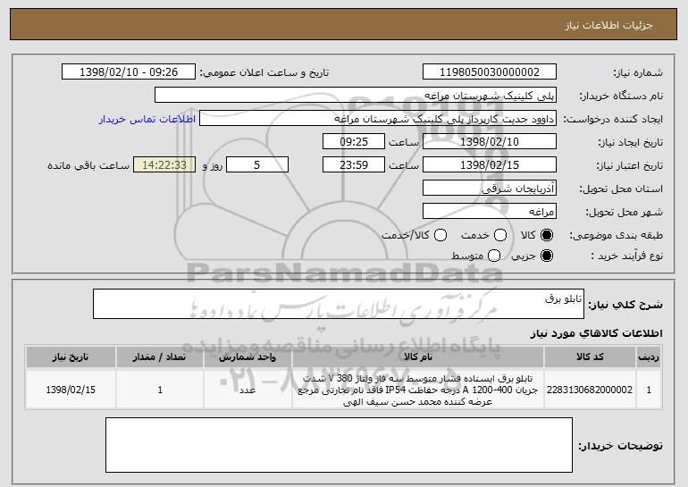 شرح کلی نیاز: تابلو برق