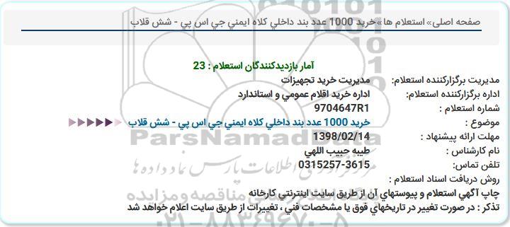 موضوع : خرید 1000 عدد بند داخلی كلاه ایمنی جی اس پی - شش قلاب
