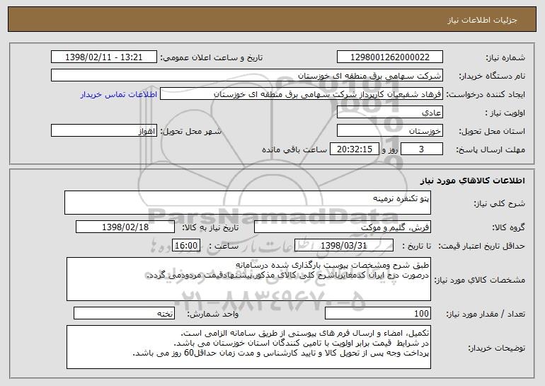 نام دستگاه خریدار:شرکت سهامی برق منطقه ای خوزستان