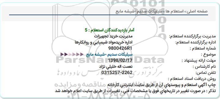 اداره برگزارکننده استعلام: اداره خرید مواد شیمیایی و روانکارها