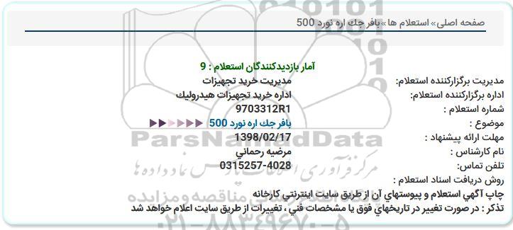 اداره برگزارکننده استعلام: اداره خرید تجهیزات هیدرولیک