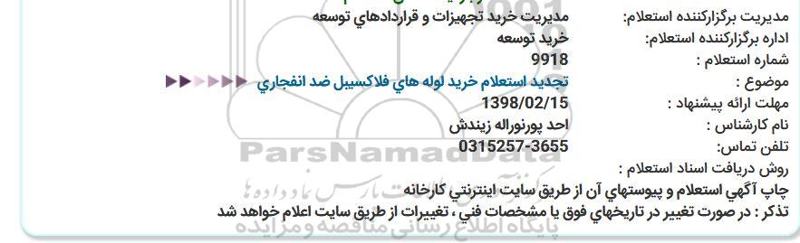 موضوع : تجدید استعلام خرید لوله های فلاکسیبل ضد انفجاری