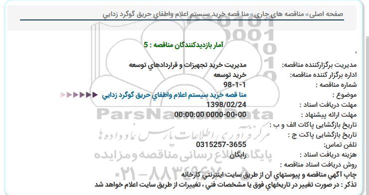 مناقصه خرید سیستم اعلام واطفای حریق گوگرد زدایی , مناقصه, مناقصه خرید سیستم اعلام واطفای حریق گوگرد زدایی
