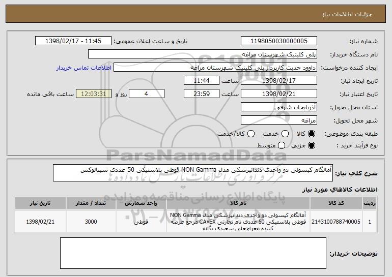 نام دستگاه خریدار:پلی کلینیک شهرستان مراغه