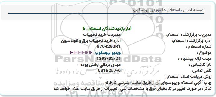 اداره برگزارکننده استعلام: اداره خرید تجهیزات برق و اتوماسیون